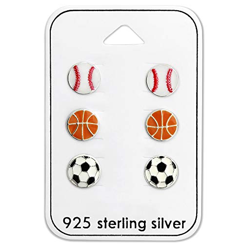 Why Choose 925 Sterling Silver SET OF 3 pairs Sports Soccer Ball, Baseball, Basketball Ear Studs Stud Earrings 28471?