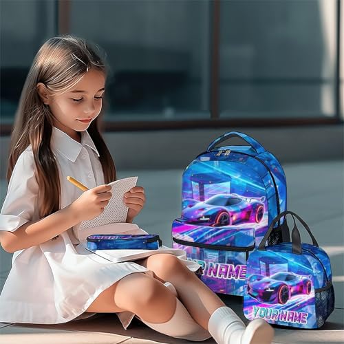 • 3-in-1 School Bag Set: The ideal companion for kids, this custom racing car bookbag set includes a sturdy school backpack, an insulated lunch box, and a trendy pencil pouch to keep everything neatly organized throughout the school day