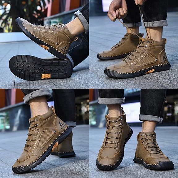 Sole material: Faux LeatherOuter material: Faux LeatherClosure type: Lace-UpWater resistance level: Water ResistantLong-Term cozy Experience: Our sawbehind mens boots ergonomically designed, it provides excellent support and cushioning, reduces the impact on the feet and joints, and ensures comfort when standing or walking for a long timeExquisite Handmade: Each pair of sawbehind leather boots mens is handmade by skilled craftsmen, paying attention to details and striving for excellence, reflecting the persistence in quality and love for craftsmanshipPremium Leather Material: Made of silky smooth and wear-resistant premium leather, it has waterproof and breathable functions to ensure that every step is comfortable and durableAnti-slip Rubber Sole: The durable rubber outsole is designed to be flexible, combined with a soft and comfortable insole and anti-slip texture, providing excellent grip, increasing stability and comfortFashionable and Versatile: This sawbehind wide mensboots combines fashion and function, suitable for various occasions, such as going out, walking, driving or formal occasions, enhancing your overall look Perfect for everyday use. finest materials and excellent craftsmanship ensure long-lasting durability.