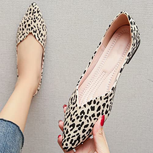 INEELUYI Leopard Print Flats Shoes for Women Pointed Toe Slip On Flat Ballet Shoes Dress Shoes