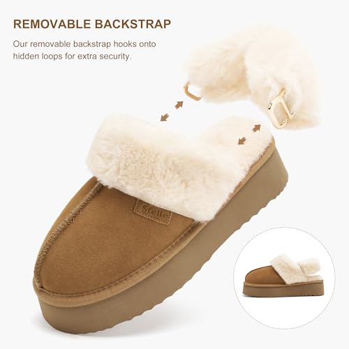Stelle Genuine Suede Platform Slippers for Women Removable Backstrap Memory Foam Indoor Outdoor Water-Resistant