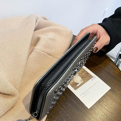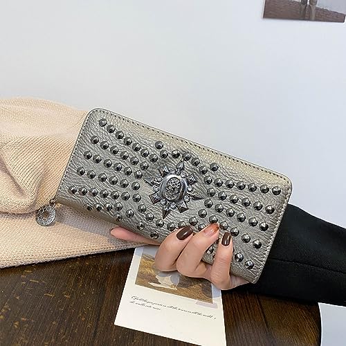 Skull Wallets for Women - Large Capacity Womens Clutch Wallet Purse Punk Studs Gothic Skull Chain Women Wallet Long Purse Credit Card Clutch for Women Handbag (Champagne Gold)