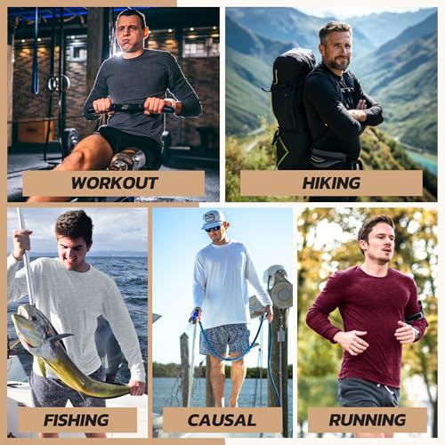 Fabric type: 100% PolyesterCare instructions: Machine WashOrigin: ImportedClosure type: Pull On【Quick Dry & Moisture Wicking】 The Quick Dry shirts are designed with high-performance fabric that wicks sweat away from the skin, ensuring rapid drying and keeping you cool and dry all day long.【UPF Sun Protection】 Our sun shirts for men come with UPF sun protection, effectively shielding your skin from harmful UV rays, allowing you to safely enjoy outdoor activities.【Comfort & Easy Care】 These mens fishing shirts are made from a distinctive blend of polyester, offering a good combination of stretchy comfort, soft touch, and breathability. Feel at ease all day in these easy-to-care-for shirts.【Multiple Occasions】 These swim shirts for menare perfect for a wide range of occasions, including everyday wear, work, gym, running, fitness, hiking, swimming, vacations, and more. Enjoy the versatility of these shirts for a wide variety of activities.【Versatile Fashion】 Our Athletic Shirt for Men pairs well with various outfits, working nicely as a layering piece or base layer. Designed for multi-season wear and convenient machine washing, it offers adaptable styling possibilities. Perfect for everyday use. finest materials and excellent craftsmanship ensure long-lasting durability.
