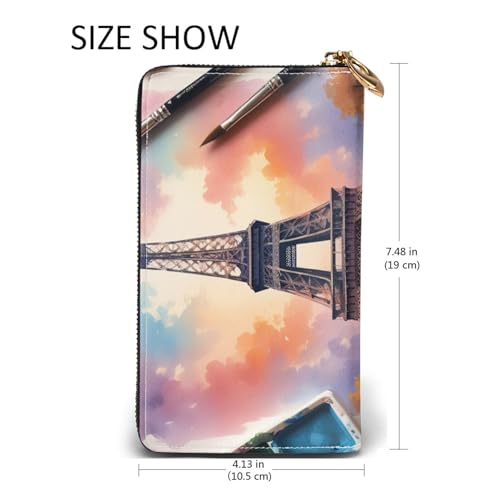Eiffel Tower Print Men and Women Leather Wallet,Long Zipper Wallet,easy-to-use to Carry, Various Bank Card Storage