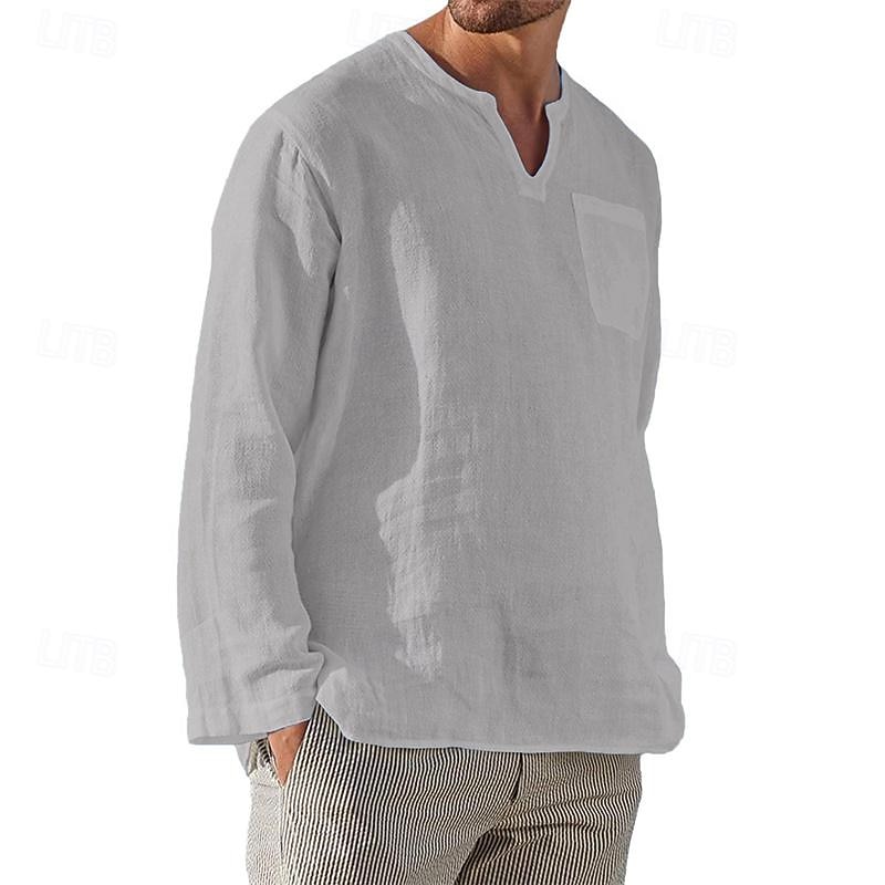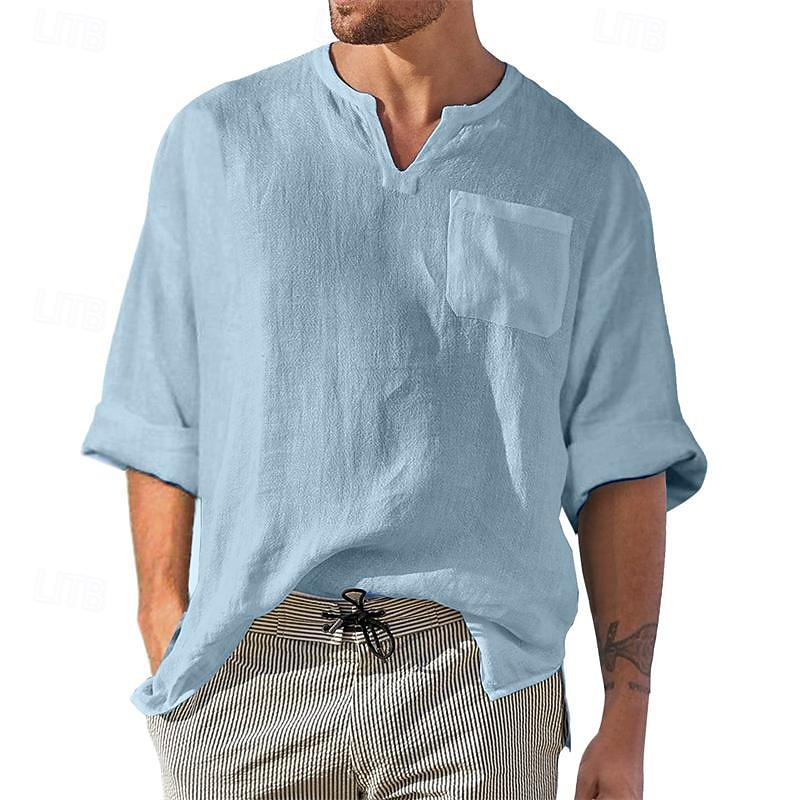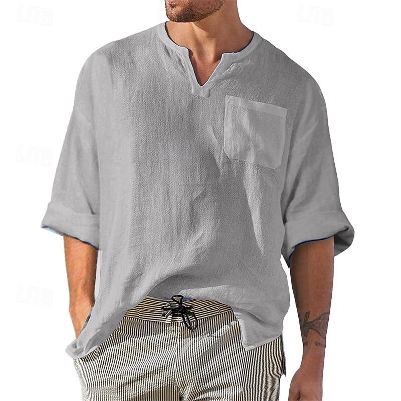 Highlights [Fabric] : Crafted from a linen cotton blend, this men’s shirt combines the breathability of linen with the softness of cotton, ensuring comfort throughout the spring and fall. [Fit] : The shirt features a casual, relaxed fit that is perfect for creating a laid-back, fashionable look suitable for various occasions. [Design Highlights] : A V-neckline adds a touch of elegance to the shirt’s casual vibe, complemented by rolled-up sleeves and a convenient chest pocket for added style and functionality. [Occasions] : Ideal for vacations, holidays, casual daily wear, or streetwear, this versatile shirt effortlessly pairs with casual trousers or shorts, making it a great choice for outdoor activities and informal gatherings. [Size Range] : Available in sizes M, L, XL, and 2XL, catering to a broad range of fits for any spring or fall wardrobe. Perfect for everyday use. finest materials and excellent craftsmanship ensure long-lasting durability.