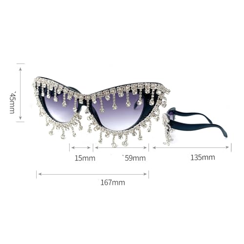 Origin: ImportedFashion Crystal Design - Shiny Crystal Tassels Sparkling decorated Oversized Cat Eye Trendy Shades, which enhances the fashion sense of the glasses. Quickly attract attention in the crowd. Delicate crystal embellishment, full of exotic atmosphereOversized Cat eye Sunglasses -- Fashion Oversize Tassel Rhinestones Sunglasses Women Succinct Style. ADAPT to ALL OCCASIONS -- such as walking, driving, shopping, taking photos, and is suitable as high fashion accessory and daily wear all year round. It is also gift ready, making it a wonderful yet practical gift idea for friends and Family[UV Protective] Cat Eye Sunglasses for women with UV400 rated protection, can block of both UVA and UVB radiation. Youβll love to wear these cateye sun glasses in the cozy light of summer or on those cold winter mornings.Cute and Novel Design: the novelty sunglasses are designed in the shape of cat eye with sparkling rhinestones and diamond decoration, this design is very novel and cute; After wearing them, will make you more elegant and charmingWIDE APPLICATIONS - these novelty cat eye sunglasses are suitable for both women, you can wear them for a variety of occasions, such as shopping, traveling, parties, taking photos, or just for daily wear all around the year, also can be worn for Halloween, Christmas, cosplay or stage performance to match with other costume accessories Perfect for everyday use. finest materials and excellent craftsmanship ensure long-lasting durability.