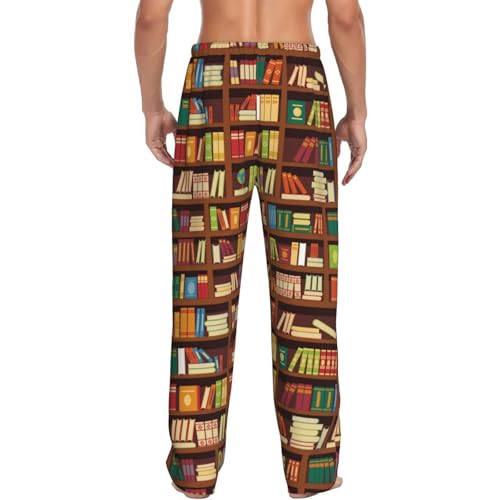 Library Vintage Bookshelf Print Mens Pj Pants,plush Men Lounge Pants,Mens Pajama Pants Bottoms,Sleep Pants For Men