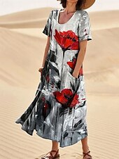 More information about Women's Long Dress Maxi Dress Casual Dress Swing Dress Summer Dress Elegant Fashion Romantic Outdoor Party Holiday Regular Fit Flower Short Sleeve Crew Neck Blue Rainbow Gray Summer