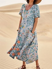 sought-after ! Women's Long Dress Maxi Dress Casual Dress Swing Dress Summer Dress Elegant Fashion Romantic Outdoor Party Holiday Regular Fit Flower Short Sleeve Crew Neck Blue Rainbow Gray Summer
